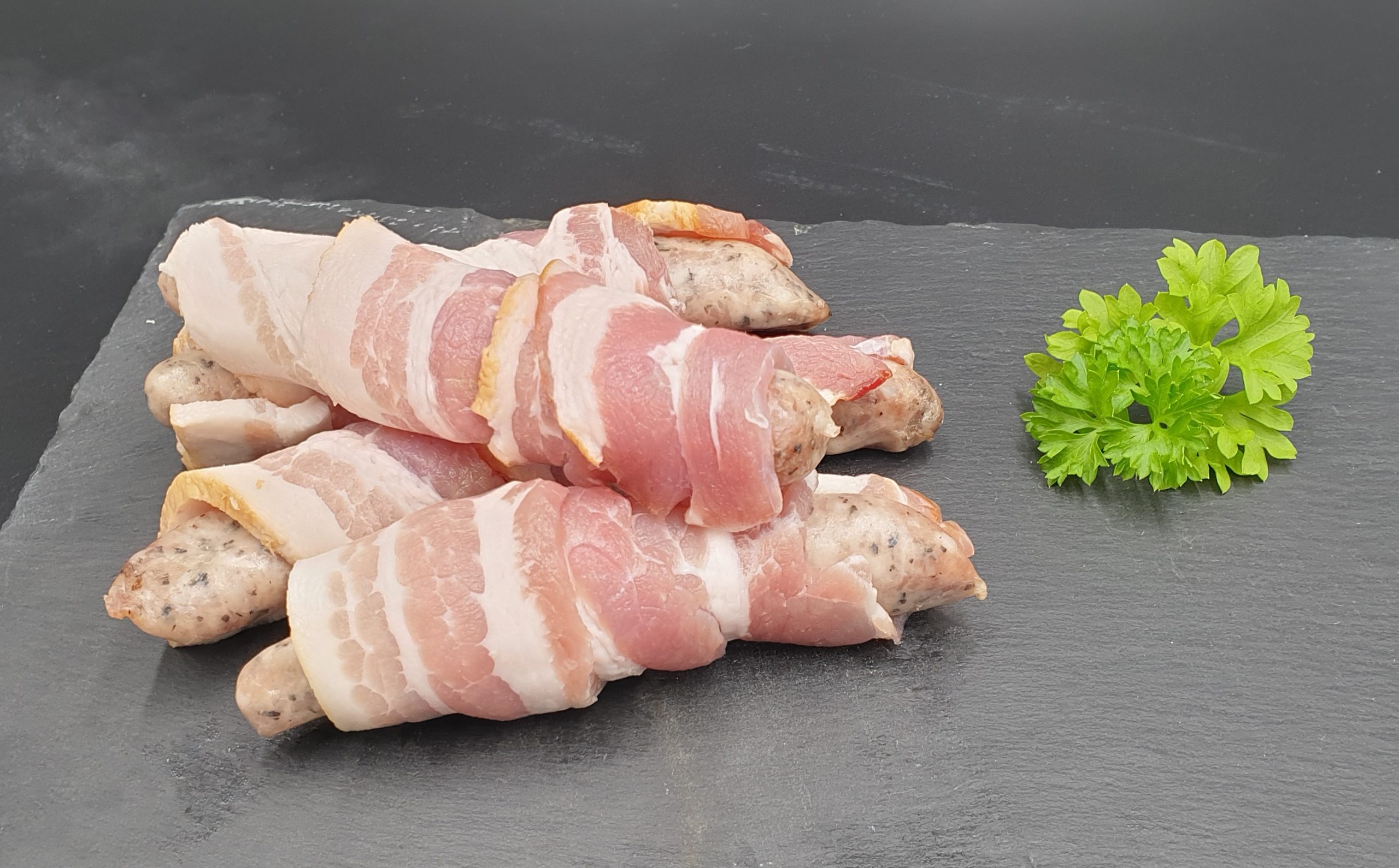 Traditional farmhouse pork & sage chipolata sausages, wrapped in smoked streaky bacon. Hand made by our butchers, using a 50 year old recipe.