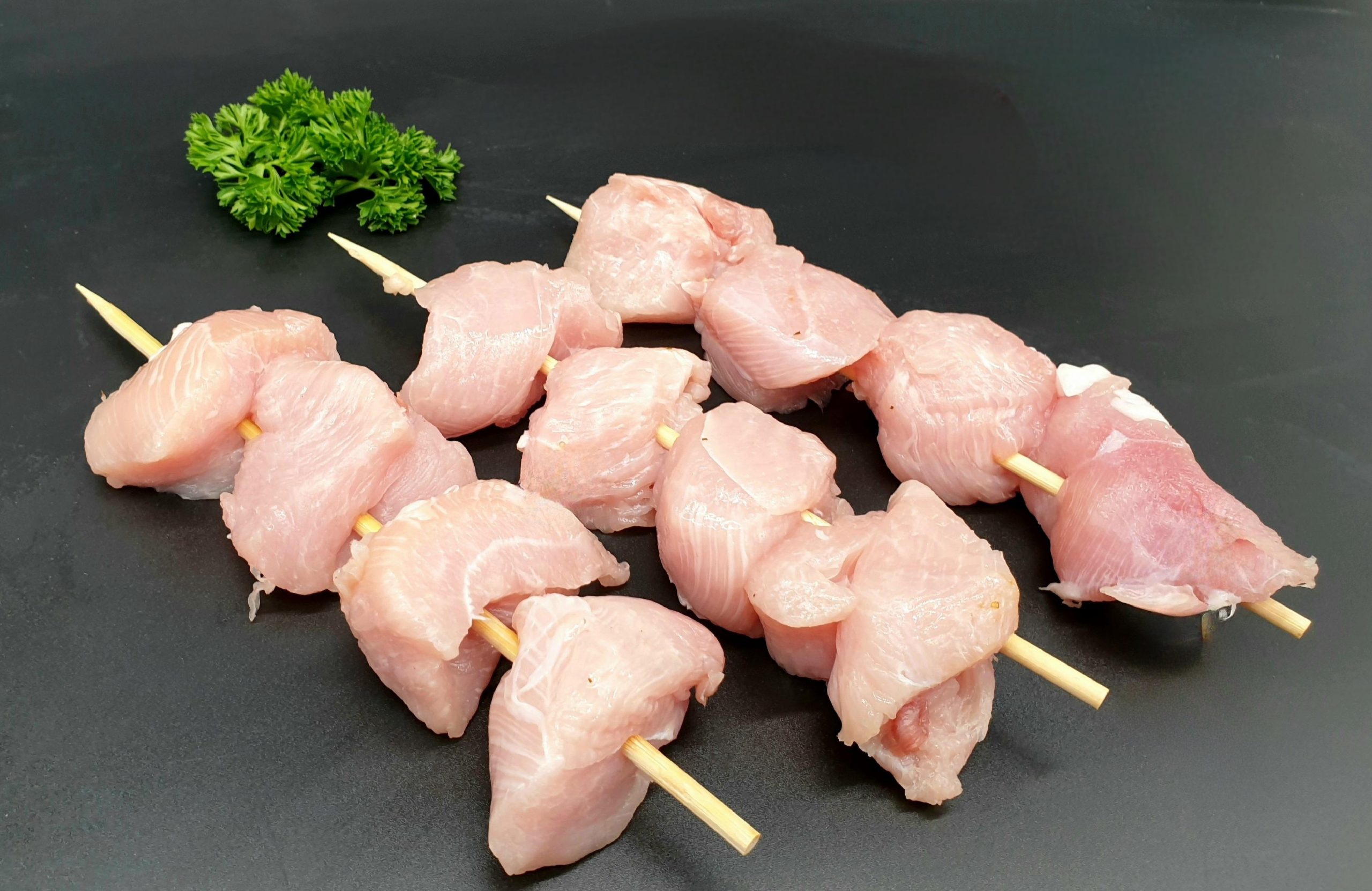 Succulent chunks of turkey on bamboo skewers – available with or without marinade